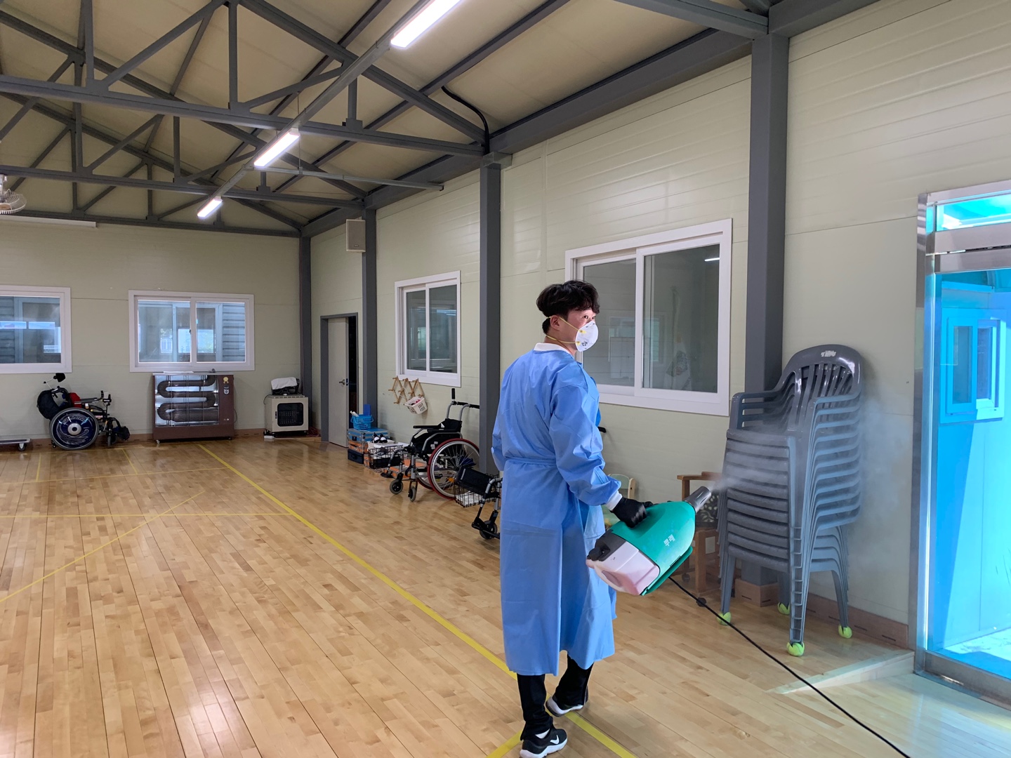 장애인체육 시설 방역소독 작성자 관리자 내용 충주시장애인체육회는 코로나19로 운영을 중단했던 장애인체육 가맹단체 시설 등을 재개방에 앞서 방역 소독을 하였다.체육회는 시설 개방에 대비해 보치아구장, 호암체육관(당구, 시각탁구), 용관동(테니스, 론볼장, 파크골프)사무실, 헬스장 등 체육시설에 방역 소독을 마쳤다. 첨부파일 소독(보치아구장).jpg [ Size : 435.67KB, Down : 302 ] 미리보기 다운로드 소독(당구장).jpg [ Size : 361.05KB, Down : 300 ] 미리보기 다운로드 소독(게이트볼장).jpg [ Size : 532.41KB, Down : 247 ] 미리보기 다운로드 소독(탁구장) (2).jpg [ Size : 421.33KB, Down : 277 ] 미리보기 다운로드 태그 작성일 2020년 7월 16일 16시 44분 59초 수정일 2020년 8월 19일 10시 15분 40초 추가정보 임시 정보가 없습니다. 목록보기