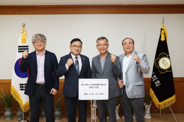 | 충주시의회, 충북장애인도민체전 선수단 격려금 전달 | |
