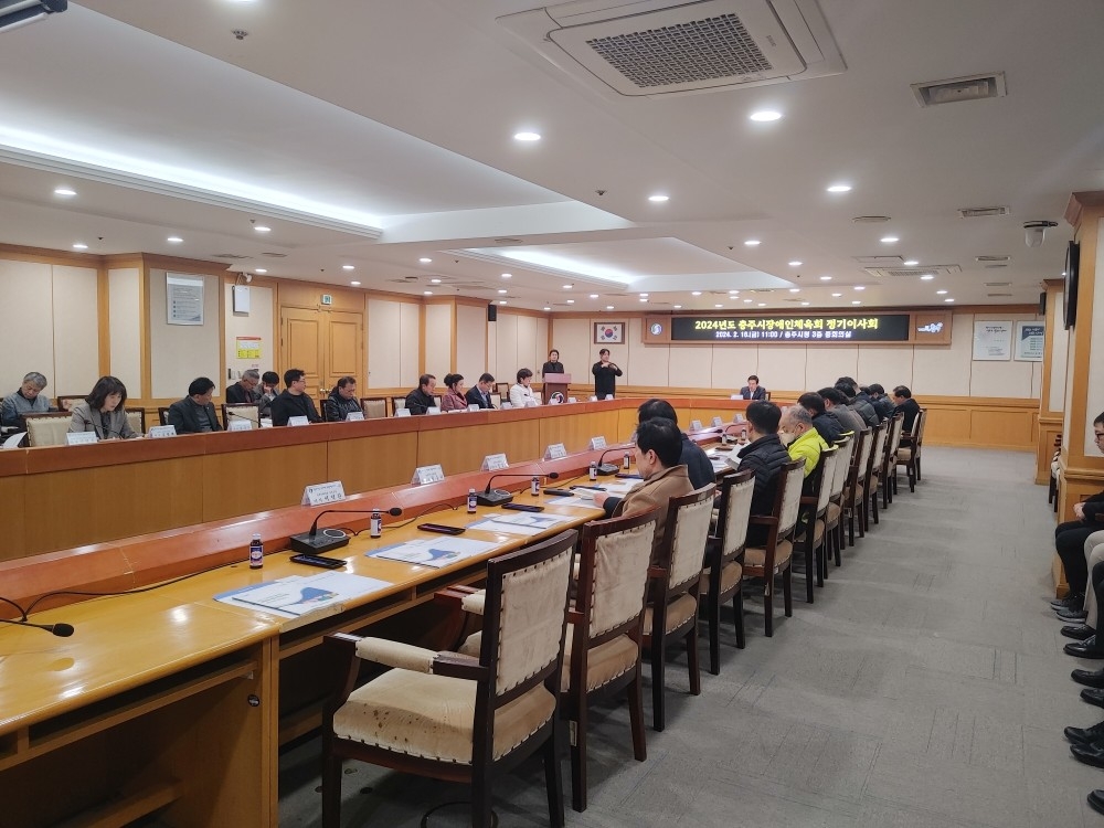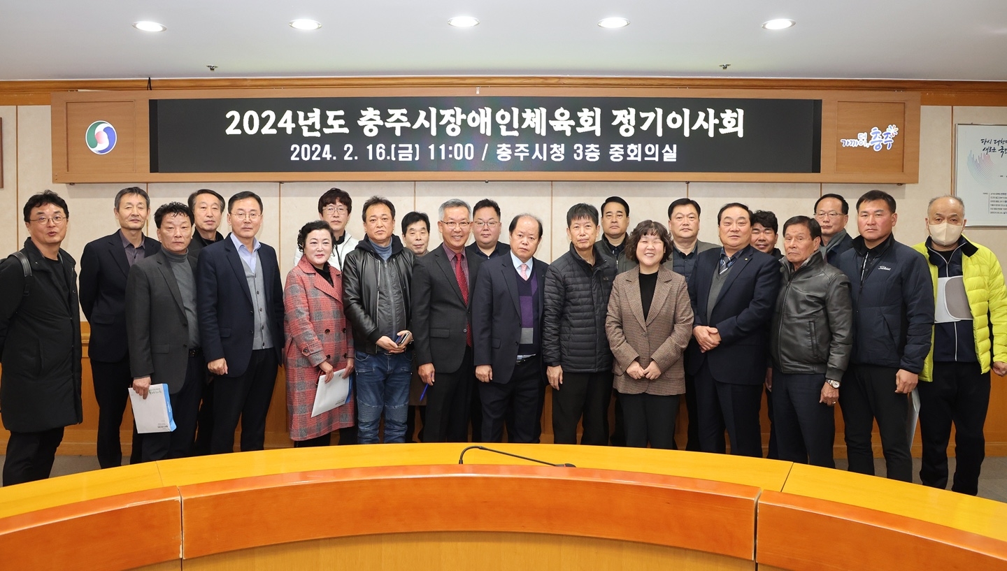 2024년도 충주시장애인체육회 정기이사회 일시 : 2024. 02. 16.(금) 11:00 ~ 장소 : 충주시청 3층 중회의실 인원 : 충주시장애인체육회 회장님 외 이사 28명 내용 - 2023년 사업추진 결과 및 결산 보고 - 2024년 사업추진 계획 및 예산(안) 승인 - 사무국장 임명(안) 승인 - 임원(감사) 선임(안) 승인 - 사무국 운영규칙 개정(안) 승인