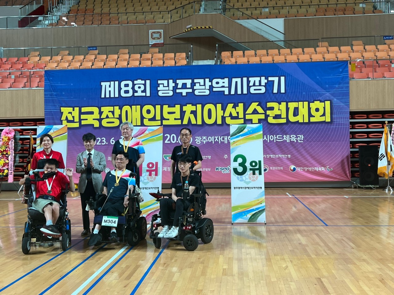 제8회 광주광역시장배 전국 보치아선수권대회 일시 : 2023. 6.17.(토) ~ 6.20.(화) / 4일간 장소 : 광주여대 유니버시아드체육관 BC2 현은주 3위 BC3 이상민 3위 BC2 김원 4위 BC4 차해준 4위