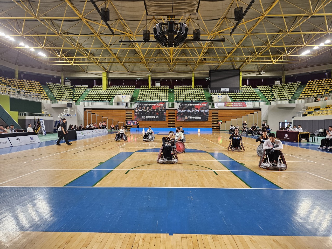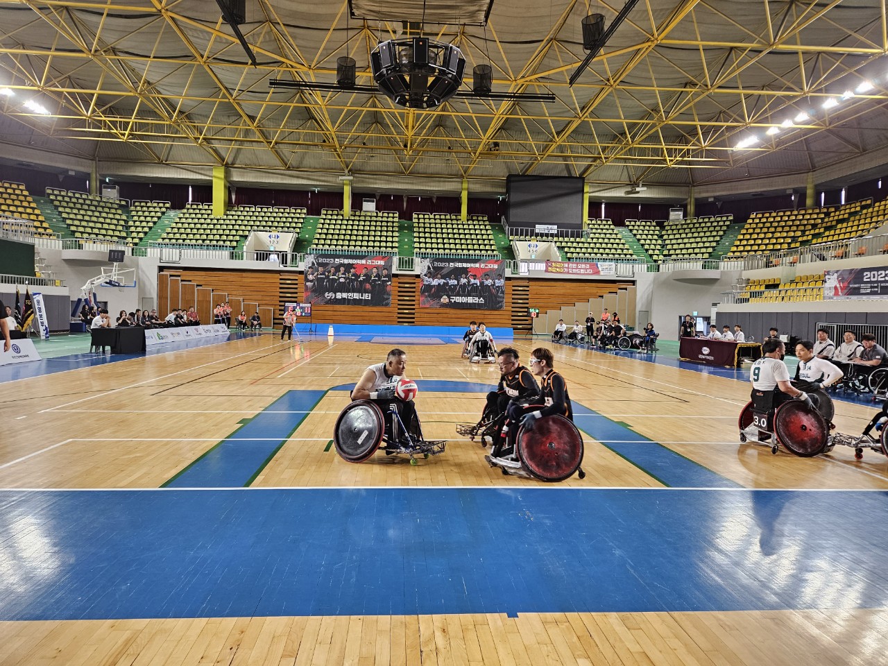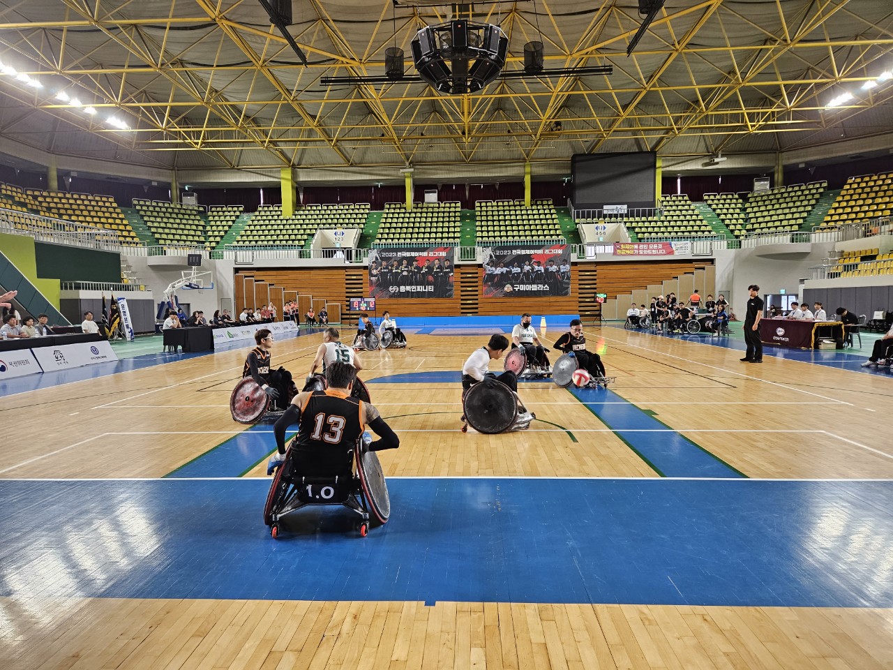 2023 전국휠체어럭비리그대회 일시 : 2023. 07. 14.(금) ~ 07. 16.(일) / 3일간 장소 : 충주체육관 인원 : 충북인피티니팀외 4개팀 150여명(선수 100명, 운영진 50) 내용 : 체육진흥과 체육진흥팀장(홍대희) 경기장 방문하여 선수 격려