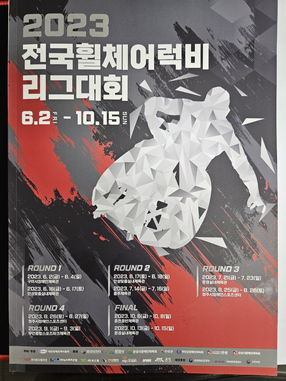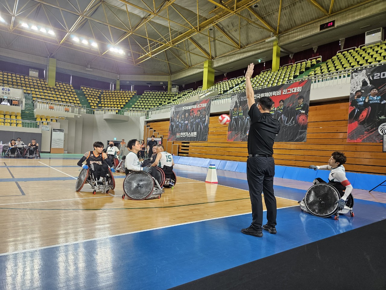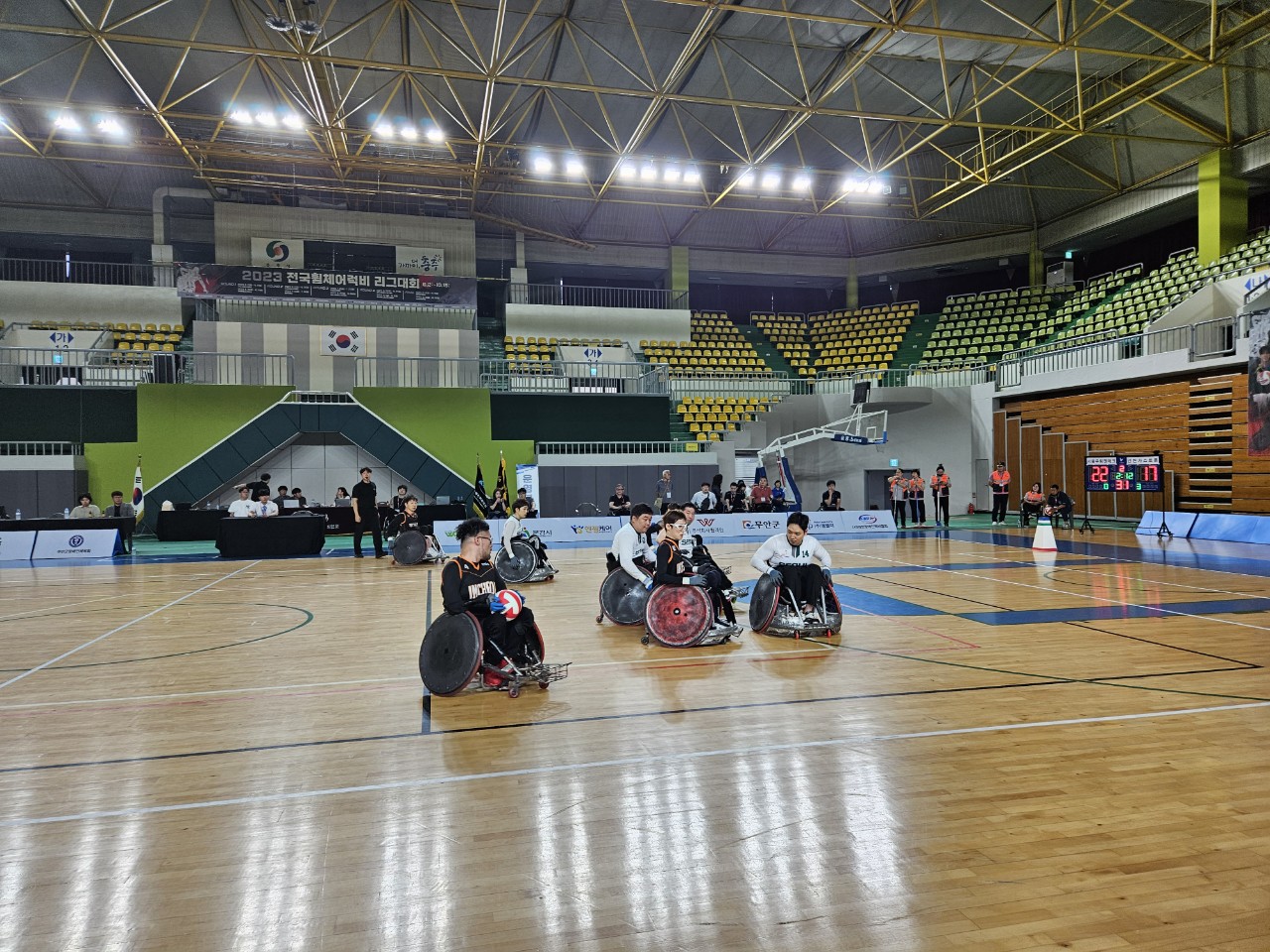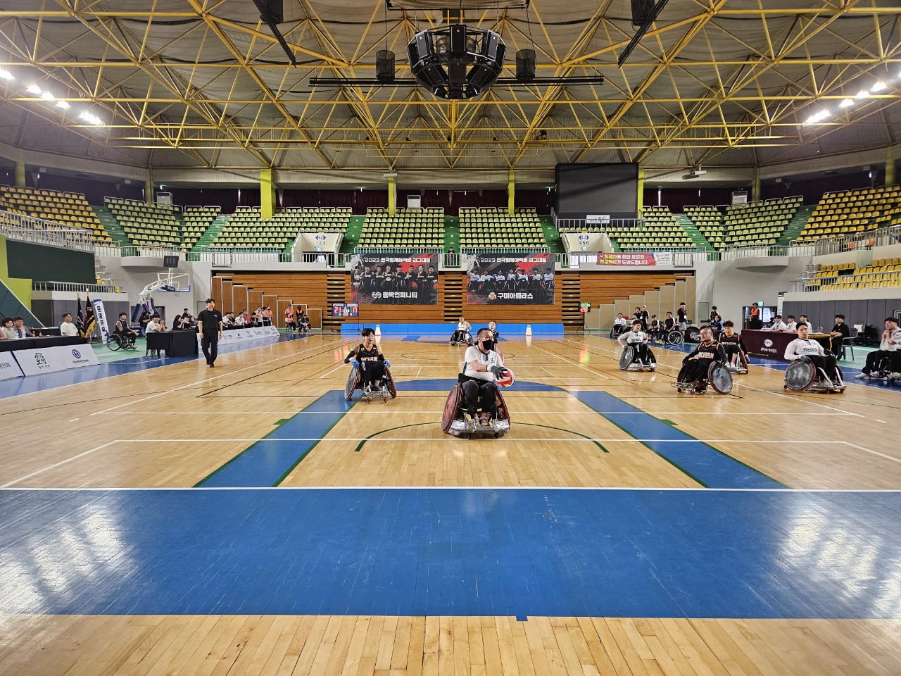 2023 전국휠체어럭비리그대회 일시 : 2023. 07. 14.(금) ~ 07. 16.(일) / 3일간 장소 : 충주체육관 인원 : 충북인피티니팀외 4개팀 150여명(선수 100명, 운영진 50) 내용 : 체육진흥과 체육진흥팀장(홍대희) 경기장 방문하여 선수 격려